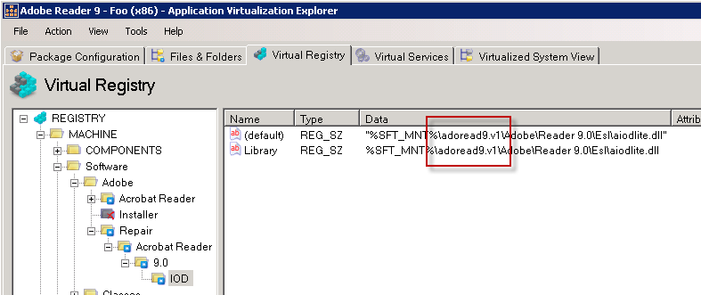 Specifically regarding the VFS issue: interestingly enough Sequencer will still show mappings in place when looking at the resulting package but looking at the same package with AVE shows that they are not actually there! As you can see from looking at branched, say, in Adobe Reader 9 package (on 32-bit system); first how the Sequencer sees the VFS mappings after the fact (apologies for the “visual quality”, these were taken from XP machine):