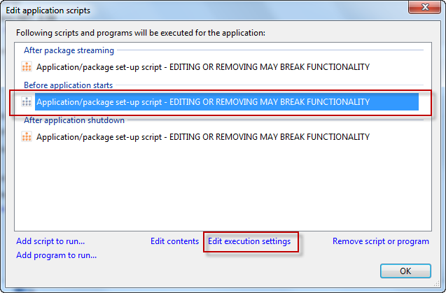Like with other configuration scripts in the AVE, these are all automatically handled for you when using Install pre-requisites software configuration script. By utilizing enhanced scripting features of AVE, all the problematic dancing around the isolation and user-context execution can solved and pre-requisites software installed as part of the App-V package execution so that during the first launch user will have to wait for local install to happen and then it will be there for the virtual application.