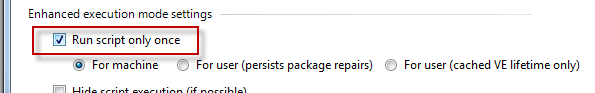 Should you need to troubleshoot why your installation is not run at the client, despite setting everything seemingly correctly, it’s probably best to go to switch run-once setting off for the script because failed execution too will flag script having been run already.