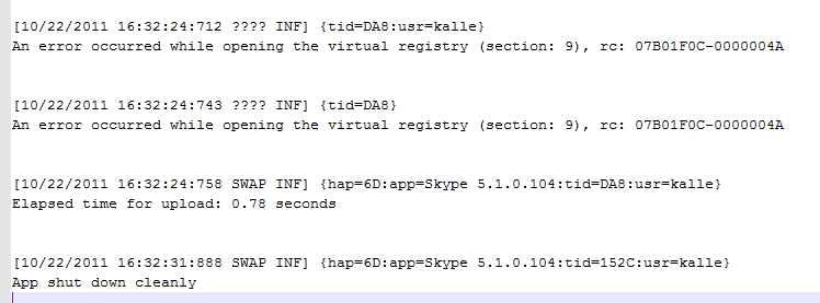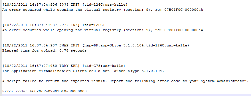 Setting aside the fact that there’s a clear behavioural difference, and that the log file cannot be trusted for in this case either, my biggest concern is that the error message is so “hostile” of sorts, if looking from the end-user’s perspective. It’s a frigging error (because it says so in the title) after all! Just like all other abnormal conditions of virtual application launches in App-V. And of course, with ABORTRESULT there’s not even any indication to the user why his or her application did not start even after franticly double-clicking the shortcut…
